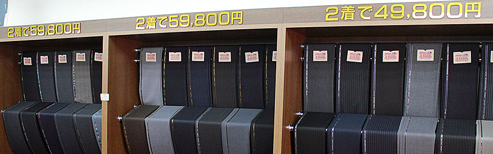 生地のクラスによって価格の幅はあるものの、あくまで当店の主流は、普段の仕事に着ていただくビジネスマン向けのスーツです。